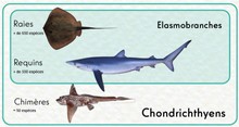 Les Elasmobranches regroupent les requins et les raies. Avec les chimères, ils forment le groupe des Chondrichtyens ou « poissons cartilagineux ». Au niveau mondial, ce sont plus de 1200 espèces appartenant à la classe des chondrichtyens qui ont été identifiées à ce jour. Ce groupe zoologique révèle une très grande diversité, par leur forme, leur couleur et leur taille, mais aussi dans leur mode de vie ou dans leur biologie.